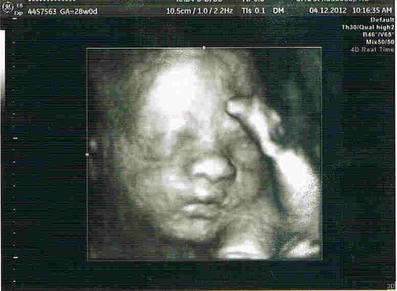 04 december 2012 (28 weken) : Het gezichtje al erg goed te zien, ons meisje!