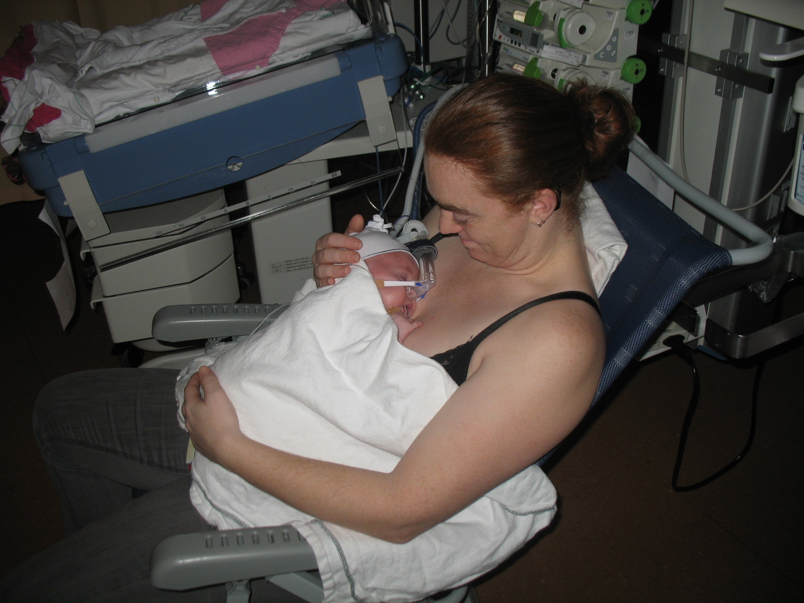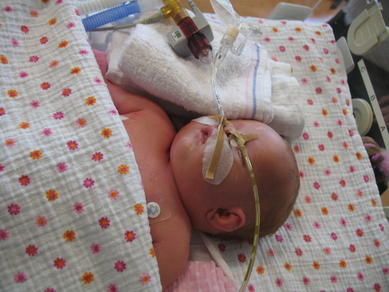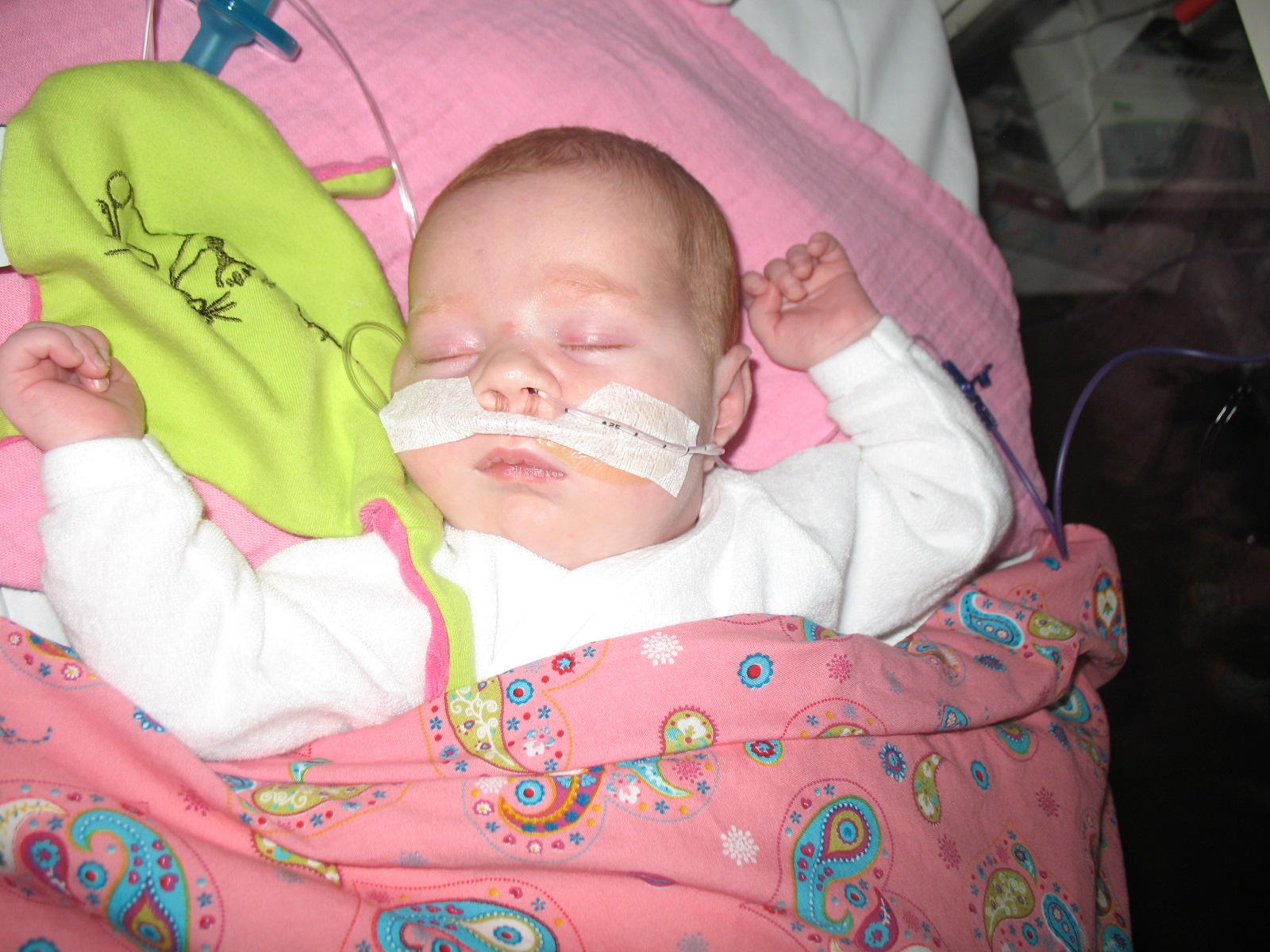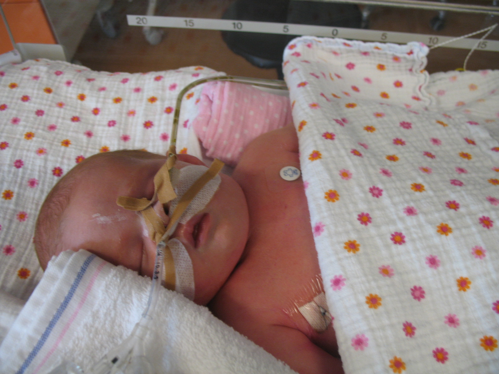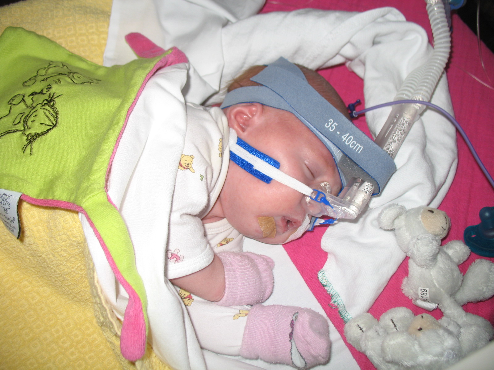 Hey, haar neusje te zien!!!! CPAP is eraf, nu heeft ze een ‘neusbrilletje’ (= alleen zuurstof).