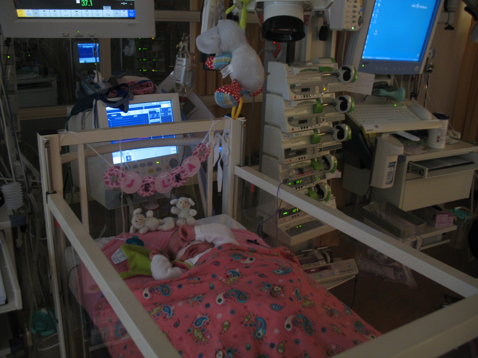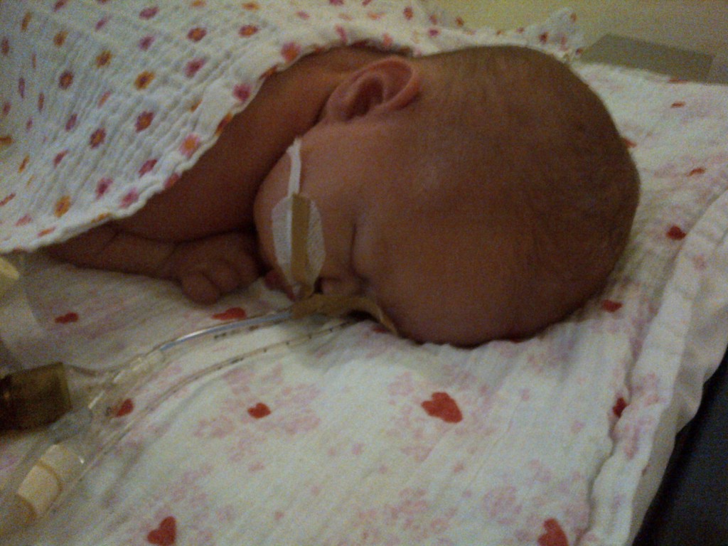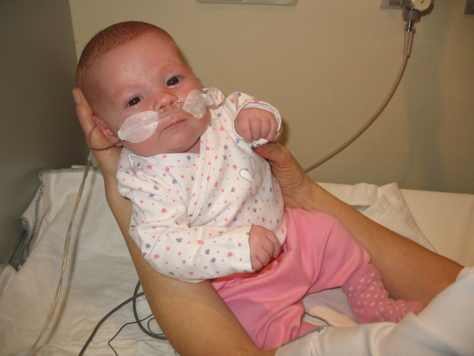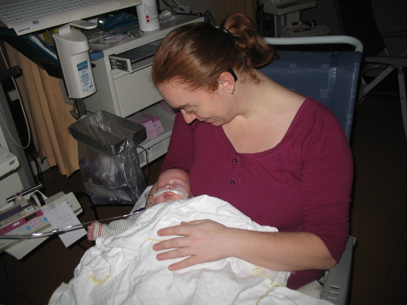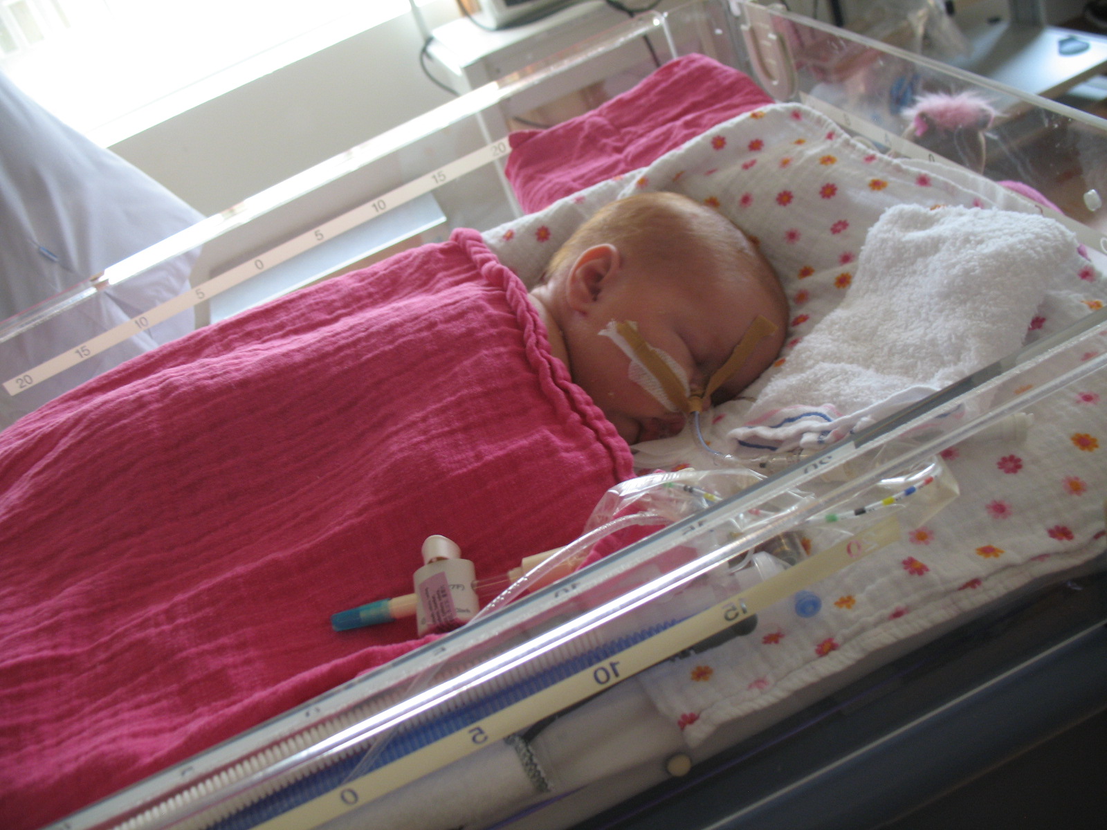 Hey, haar neusje te zien!!!! CPAP is eraf, nu heeft ze een ‘neusbrilletje’ (= alleen zuurstof).