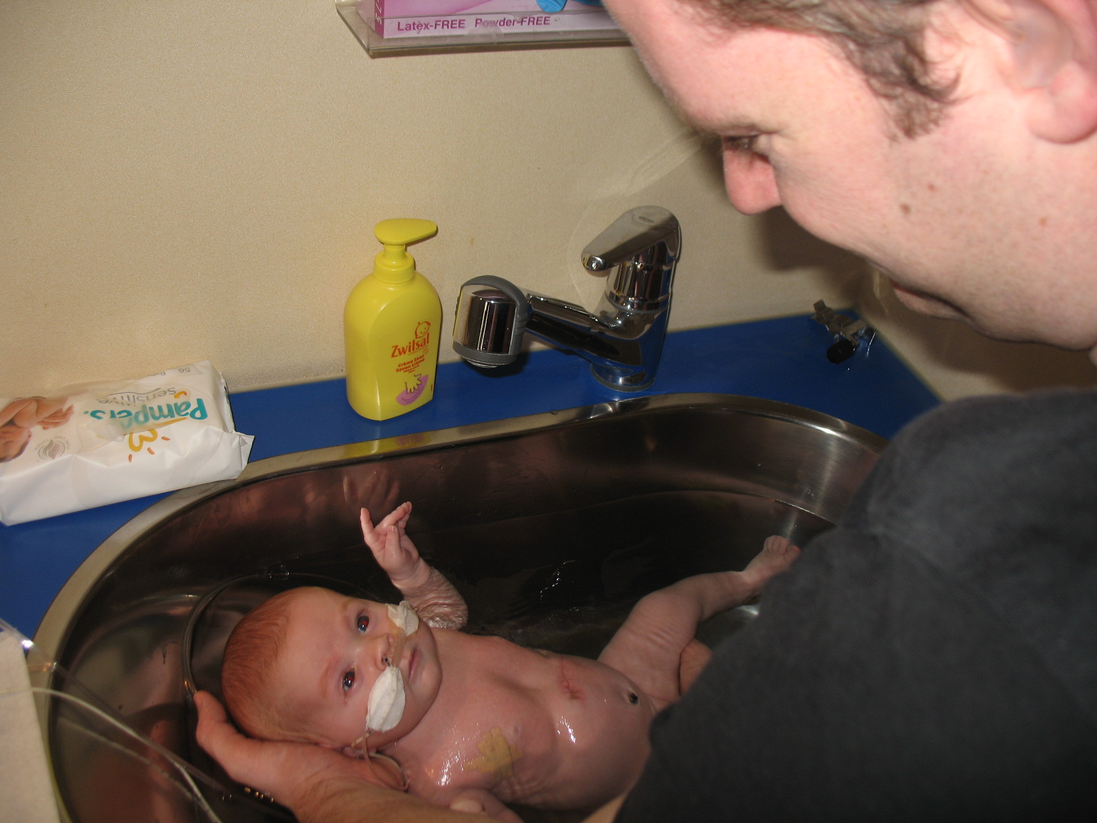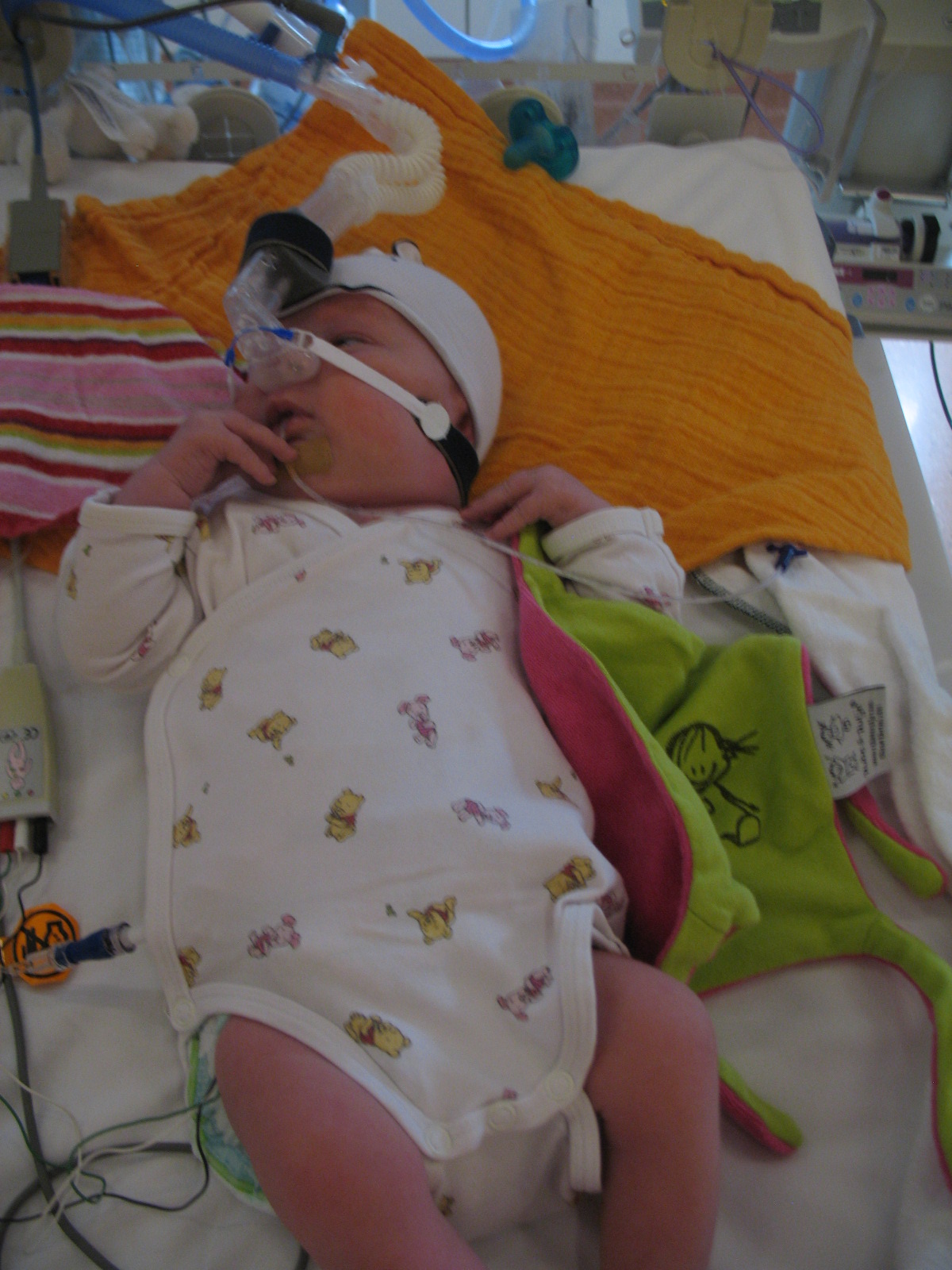 Hee, eindelijk ben ik van het slangetje in mijn neus af! Maar nu heb ik CPAP (soort snorkeltje)