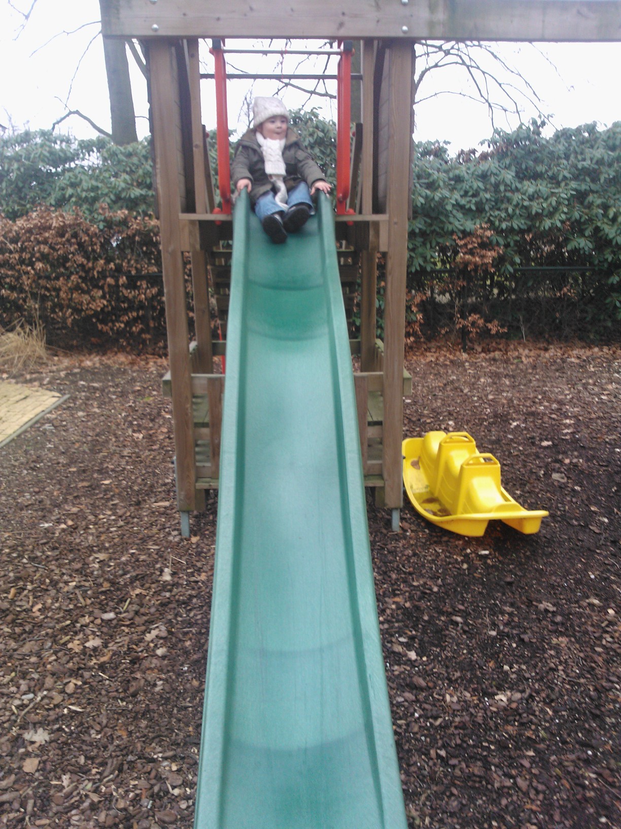 Roos aan het spelen in de tuin van het Ronald mc Donalds huis.